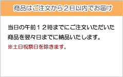 午前12時までに注文を入力していただければ、翌々日の夕方までに商品をお届けすることが出来ます。
